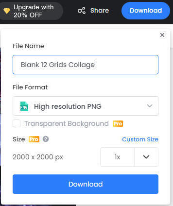 You'll know you successfully got rid of all the premium content if you click "Download" again, and that text at the bottom is gone! The blue button should also no longer prompt you to purchase premium, but should say "Download".The default settings for exporting from Fotor are perfect for our needs! 2,000 x 2,000 px is just right for the use of a moodboard. If you are completing a moodboard for one of the swaps I host, please do not change these settings! You will need to only submit a moodboard that is 2,000 x 2,000 px square.If you'd like to rename the file, you can do that here, as well. Otherwise, click "Download", and you're good to go!
