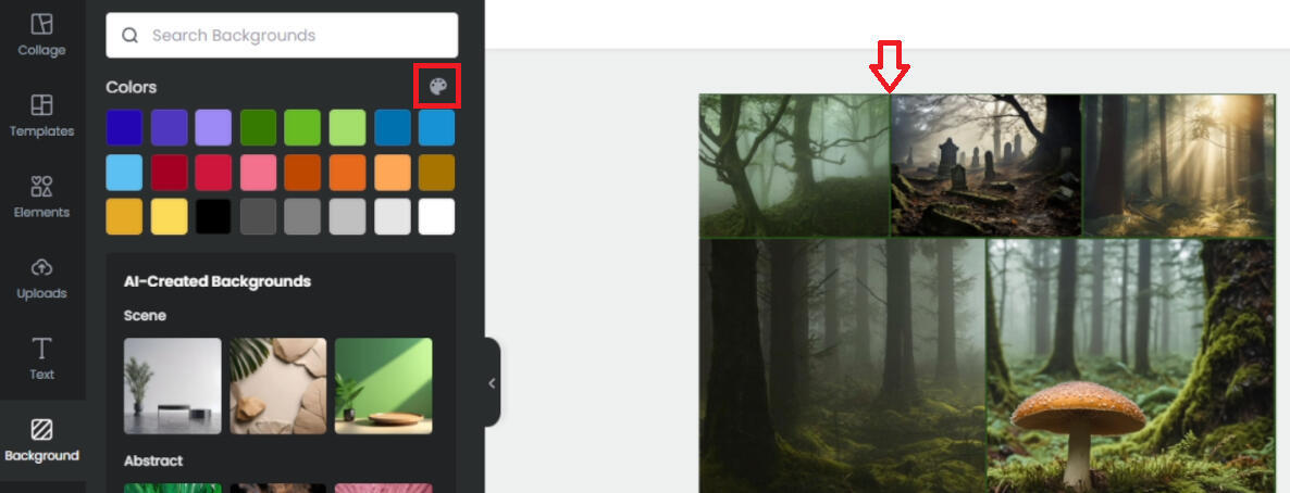 When you've tweaked what you want to tweak, here are some other tips!You can go to "Background" on the far left sidebar, and change the color that appears between the images. This is most noticeable if you did not reduce your "Margins" and "Spacing" to zero earlier, but even if you did, you might notice tiny little white cracks that have persisted becoming far less visible if you change the background color to something that matches the colors of the images themselves. In the top right corner above all the background color options is a color palette button, which you can click to use a more specific color.